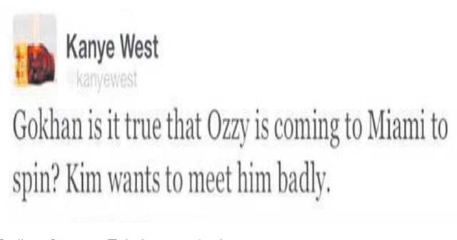 Rap yıldızı, ünlü DJ ve müzisyenin Amerika'da yaşayan Türk bir arkadaşıyla sosyal medyada iletişime geçti. Ozan Doğulu'nun arkadaşı da Kanye West'in kendisine yazdığı şu mesajı ünlü müzisyene yolladı: "Ozzy, gerçekten konser vermek için Miami'ye mi gelecek? Kim onunla tanışmayı çok istiyor." Aldığı mesaj karşısında çok mutlu olan Doğulu, bu haberi kendi instagram hesabında yayınlayarak hayranlarıyla paylaştı.