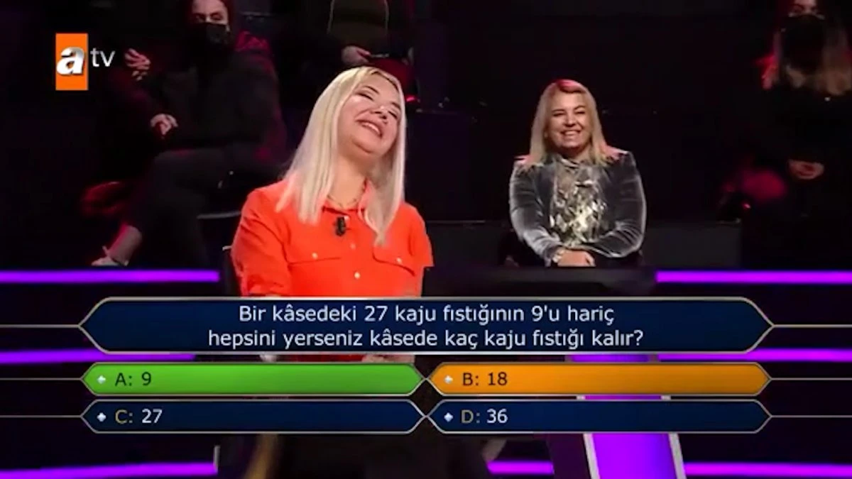 Doğru cevabın "9" olduğu soruya tereddütsüz "18" cevabını veren Özkılınç, yanlış cevap verdiğini fark edince "Evet ya. Dikkatsizliğinin kurbanı oluyor insan" diyerek yarışmaya veda etti.