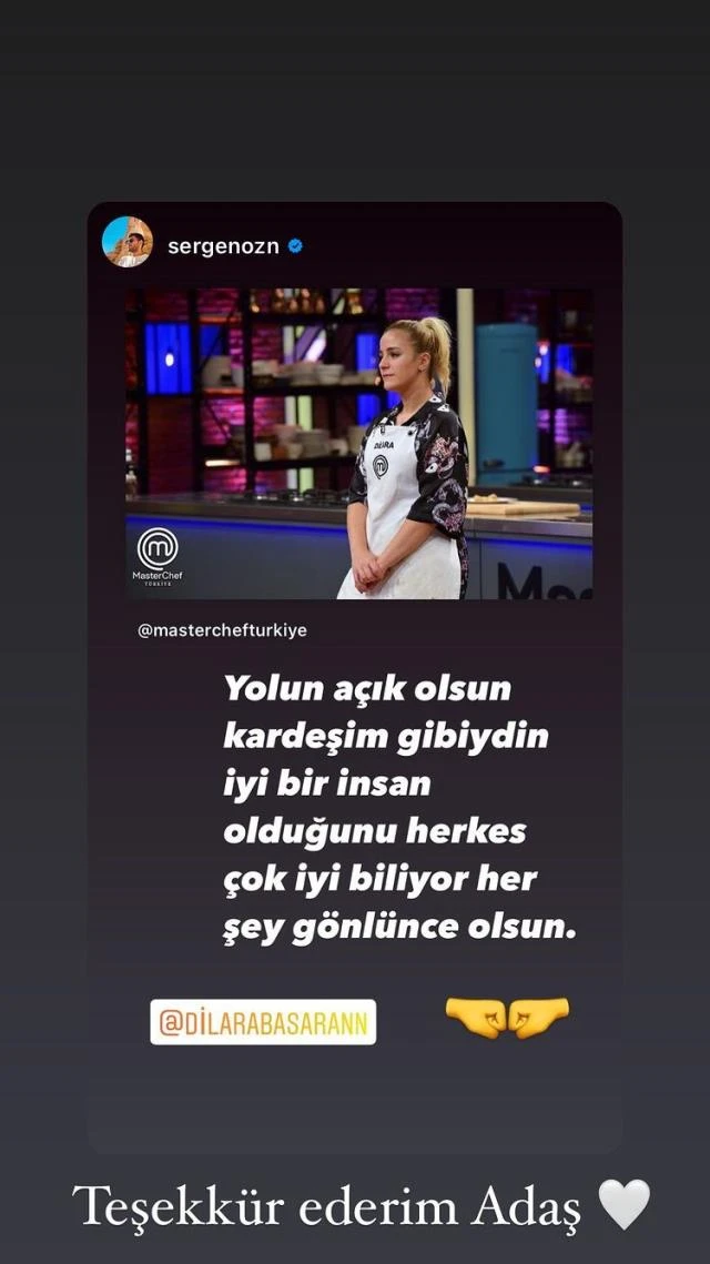 Dilara ise Sergen'in paylaşımını kendi Instagram hesabından yayınlayarak "Teşekkür ederim adaş" notunu ekledi.