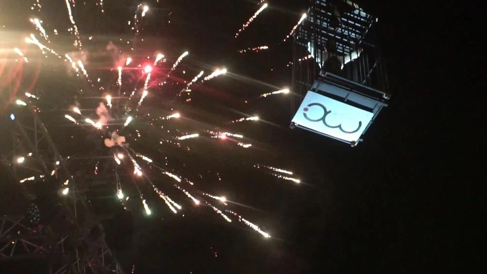 Sahneye çıkarken sevenlerine sürpriz yapmak isteyen Çevik, kafes içerisinde 40 metre yüksekten sahneye indi. İzleyenlerin yüreği ağzına gelirken, Çevik ise büyük tehlike atlattı. Havai fişekler geceye renk katarken, kıvılcımları ünlü sanatçının koluna geldi. Korkulan olmazken, ünlü sanatçı ilerleyen saatlere kadar alanı dolduran vatandaşlara şarkılarıyla unutulmaz bir gece yaşattı.