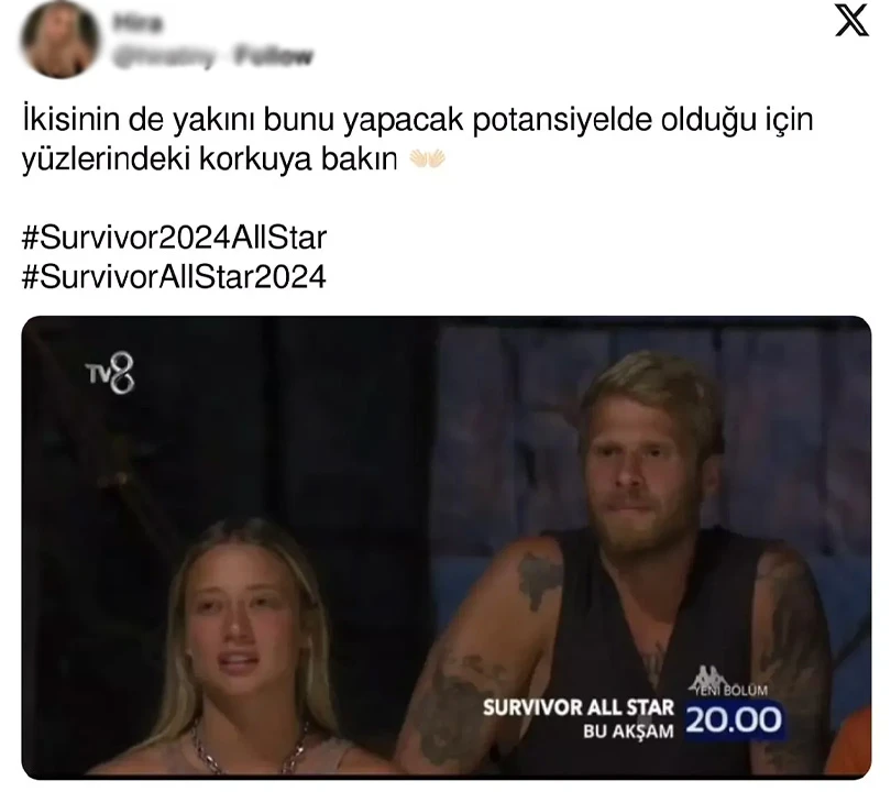 Survivor All Star 2024 yeni bölümleriyle TV8 ekranlarında izleyiciyle buluşmaya devam ediyor. Heyecanın bitmediği programda yarışmacılar kıran kırana mücadele ediyor.