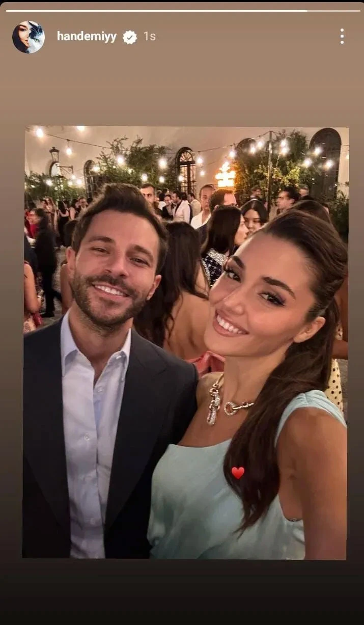 Ünlü oyuncu Hande Erçel, düğünden Hakan Sabancı ile çekilen bir kareyi sosyal medya hesabında paylaştı. Erçel, yayımladığı fotoğrafa kırmızı kalp eklemeyi de unutmadı. Bununla birlikte Hakan Sabancı da daha çok mekanlara yer verdiği fotoğraf albümünü kendi hesabında paylaştı. Hande Erçel ile olan fotoğrafını da üçüncü sıraya yerleştiren Sabancı, annesi Arzu Sabancı’dan kalpli yorum aldı.