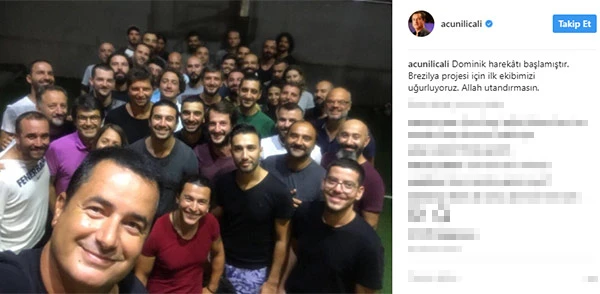 Dominik ekibiyle birlikte çektiği selfieyi takipçileriyle paylaşan ünlü yapımcı, "Dominik harekatı başlamıştır. Brezilya projesi için ilk ekibimizi uğurluyoruz. Allah utandırmasın" notunu yazdı.