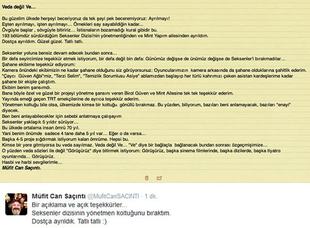 Birol Güven’in senaryosunu yazdığı, Mint Prodüksiyon tarafından yapılan 'Seksenler' dizisinde her şeyin yolunda gittiği düşünülürken, sürpriz ayrılık haberi herkesi şaşırttı. 'Seksenler'in başından beri yönetmen koltuğunda oturan Müfit Can Saçıntı, 193 bölüm sonra görevini bıraktığını açıkladı.