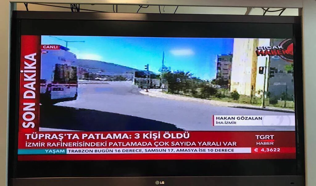 Saat 10.20'de herkesten önce 'Son Dakika' bağlantısıyla haberi verdiğimizi, İHA'nın geçtiği ilk görüntüleri de anında yayınladığımızı , hem de İHA İzmir Haber Müdürüyle telefon bağlantısını yaptığımızı, Tüpraş'ta olan biten ne varsa dört dörtlük seyircilerimize aktardığımızı görürdünüz.