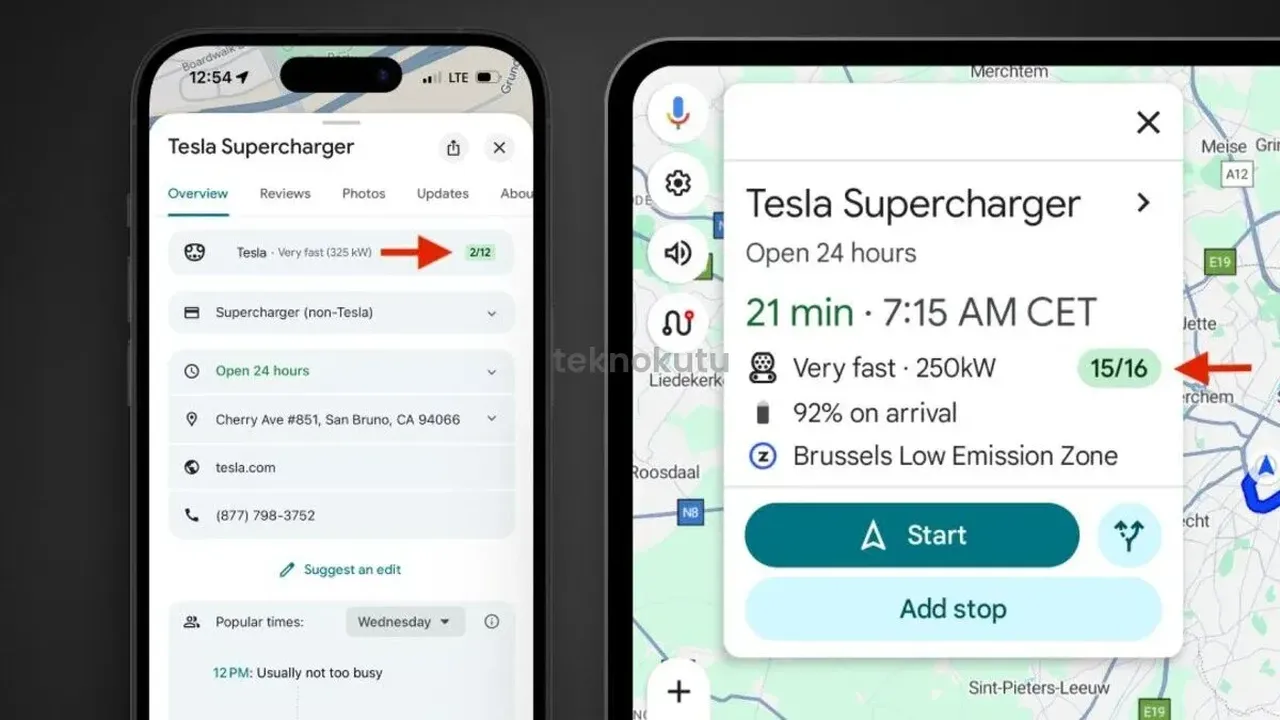 Kullanıcılar artık Tesla şarj istasyonlarının anlık doluluk oranını doğrudan Google Haritalar üzerinden görebilecek.