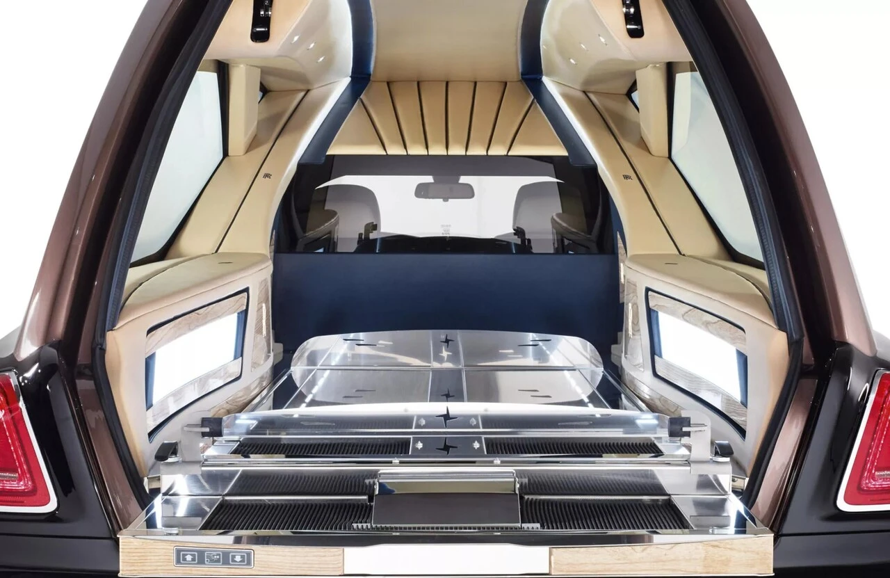 Sadece çok zenginlerin ulaşabildiği Ghost’u alarak bir lüks son yolculuk aracına dönüştüren firma, bunun için Ghost’u daha da uzatmış ve orijinaldeki lüks yaşamı tabutun konulacağı arka bölümde de korumuş.