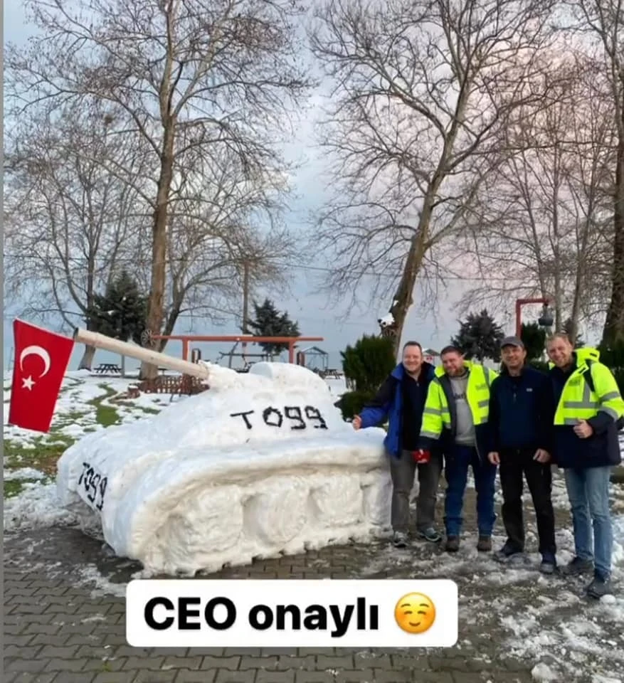 İznik gölü kıyısında bulunan Çınar Aile Çay Bahçesi işletmecisi Mehmet Udun ve yeğeni Serdar Udun ile çalışanları, kardan tank yaptı. Çalışanlar, tam 6 saatlik bir çalışma ile kardan dev bir tank yaptı.