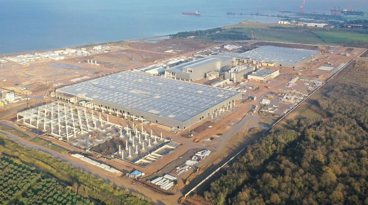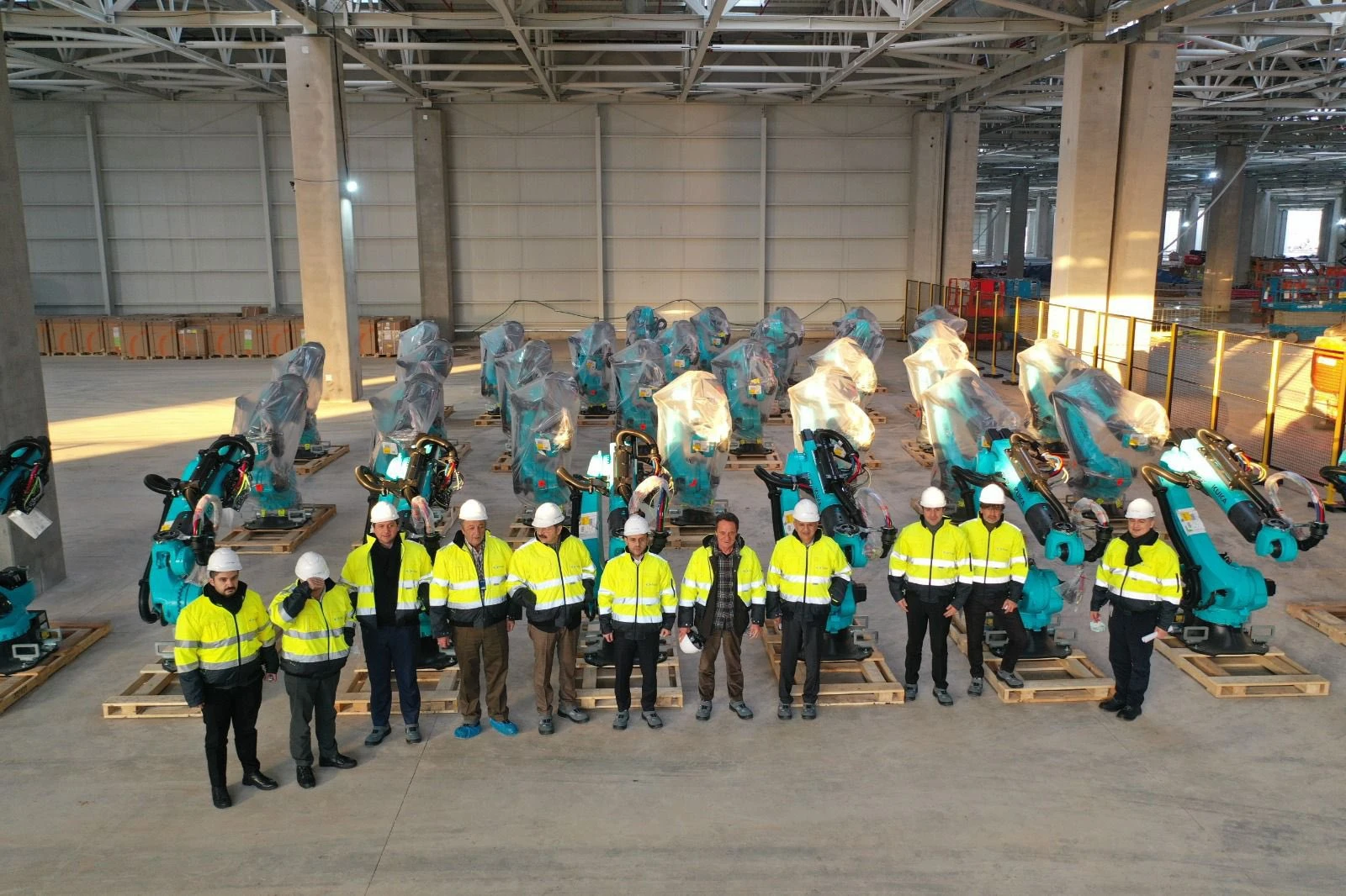Şirketin yönetim kurulu toplantısına ev sahipliği yapan Gemlik'teki tesisten paylaşılan görsellerde, araç test pistinin planları ve otomobillerin üretiminde kullanılacak turkuaz renkli robotlar dikkat çekiyor.