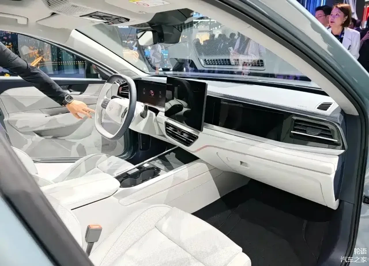 Kabinin içinde sade bir düzen hâkim. Büyük dijital gösterge paneli ve geniş multimedya ekranı sürücüyü karşılıyor. Fiziksel tuşların neredeyse tamamen ortadan kalktığını görmek mümkün. Direksiyon ve kapılardaki birkaç düğme dışında her şey merkezi ekrandan yönetilecek gibi duruyor.