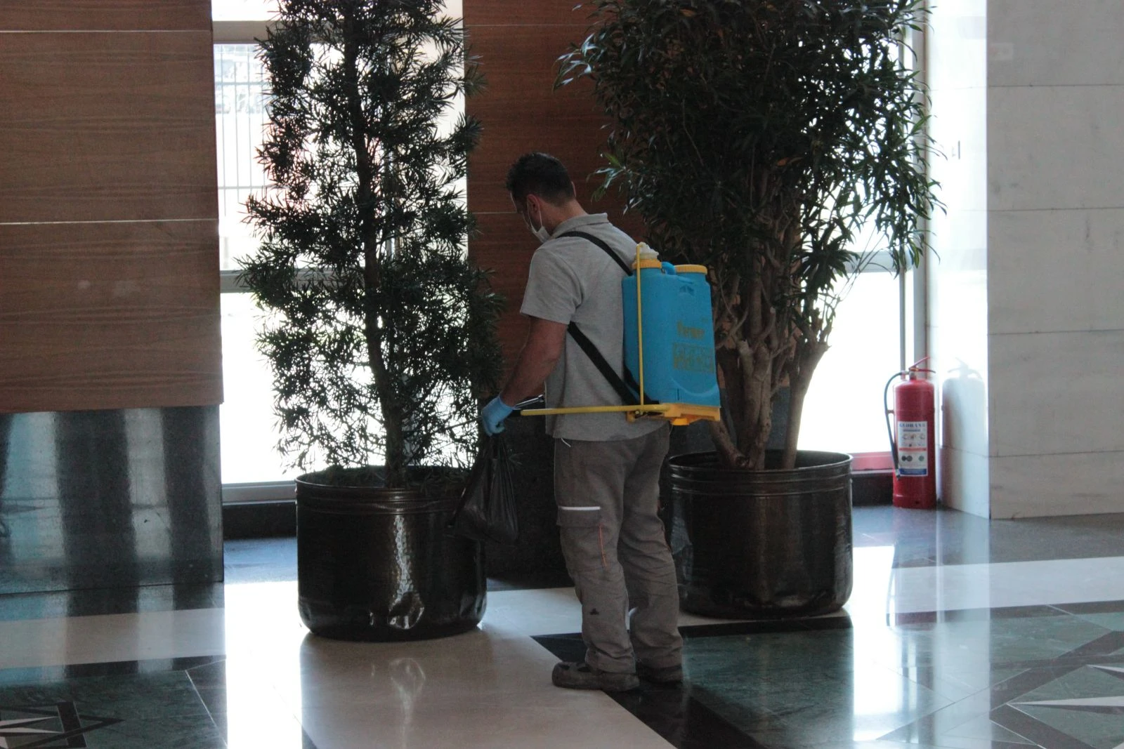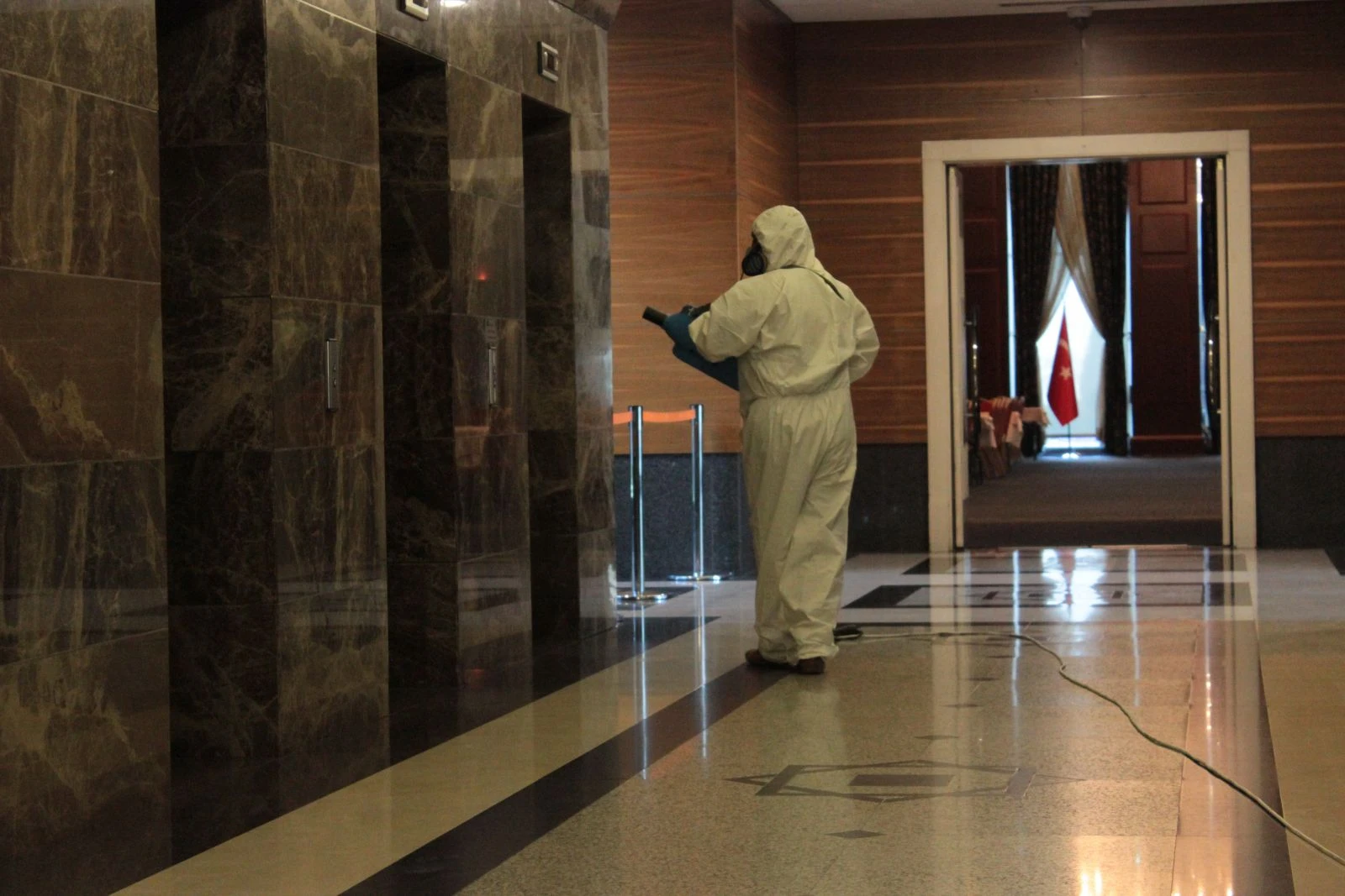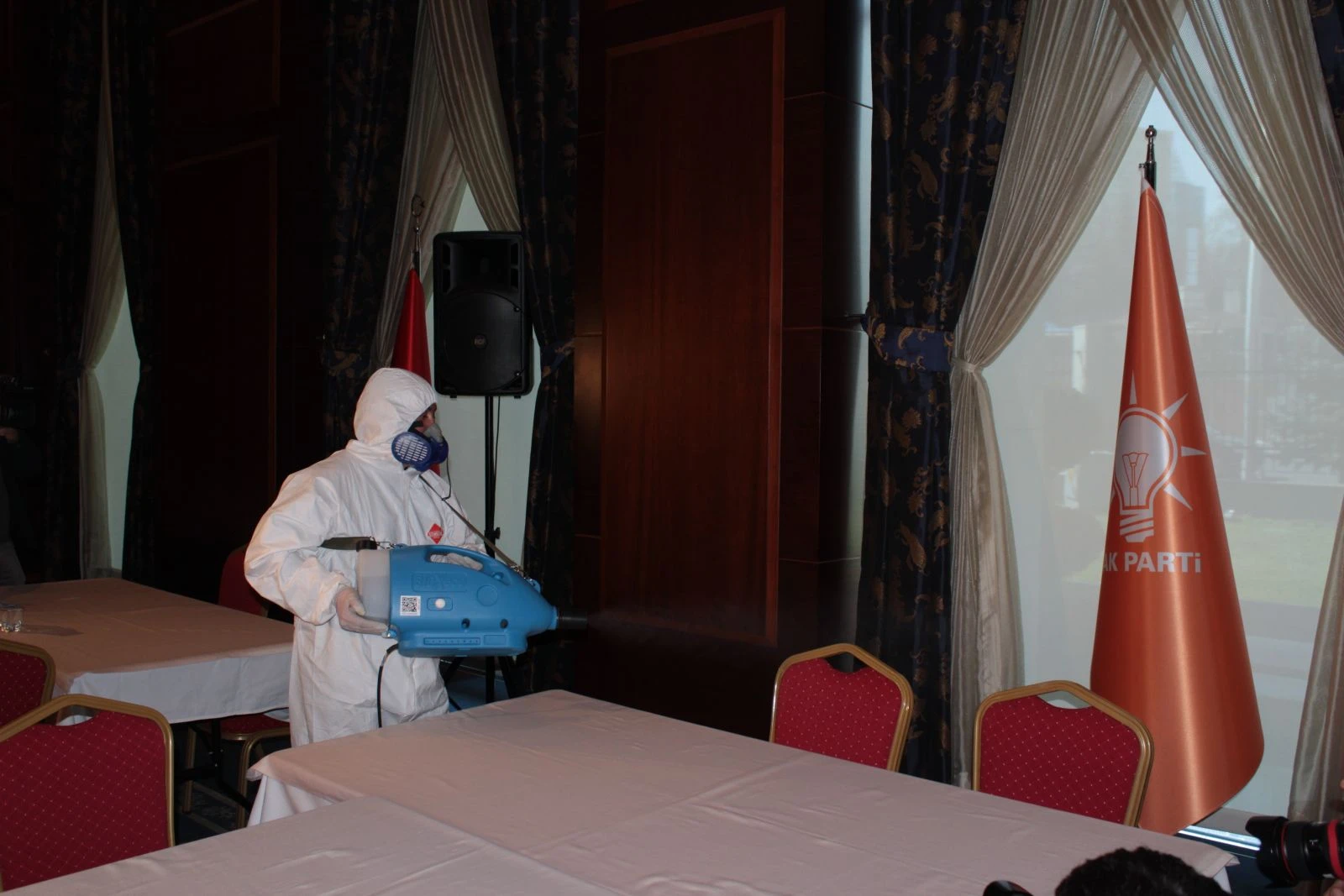 Belirli aralıklarla tekrarlanacağı söylenen dezenfekte işlemlerinin yanı sıra hafta içinde AK Parti Genel Merkez binasına yeterli sayıda dezenfektan koyulacak.