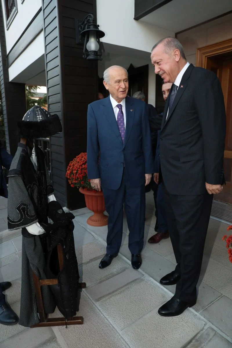 Görüşmenin sonunda Bahçeli tarafından Cumhurbaşkanı Recep Tayyip Erdoğan'a, "Hakan kaftanı" takdim edildi.