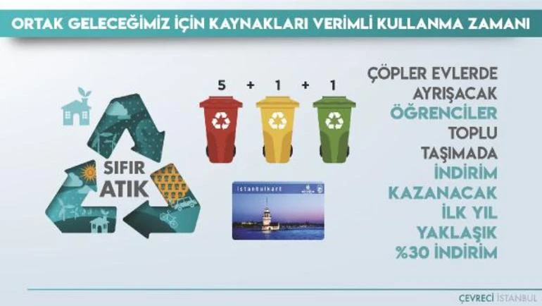 Gençlere yönelik önemli projelerinin olduğunu vurgulayan Yıldırım, “Yeni iş ve girişimcilik imkanlarının yanı sıra öğrencilerimizin ulaşımını indirimli olması için çalışmalarımız var. Artık atık teknolojileri çok gelişti. Sıfır atık politikasıyla çevreci bir şehir tasarlamak üzere ileri biyolojik arıtmadan; kaynağında çöp ayrıştırmaya kadar çok sayıda proje tasarlıyoruz. İstanbul'daki bütün evlere, bütün mahallere sıfır atık projesi kapsamında altyapı kuracağız. İnsanlar atıkları evlerinde ayrıştıracak. Ayrıştırılan atıkları alıp bir kısmını gübreye bir kısmını enerjiye bir kısmını ham maddeye dönüştürmek suretiyle gelir elde edeceğiz. Bu geliri de öğrencilerin biletlerine indirim olarak yansıtacağız. Bu da ilk yıl için yüzde 30 gibi bir indirime tekabül ediyor. Çöp ayrıştırma projesi sayesinde hem İstanbullular hem de çevre kazanacak. Haftanın beş günü organik çöp, bir günü plastik ve cam, bir günü de kağıt çöpler ayrıştırılacak. İstanbullular çöplerini evlerinde ayrıştırdıkça öğrenciler toplu taşımayı daha da indirimli kullanacak” diye konuştu.