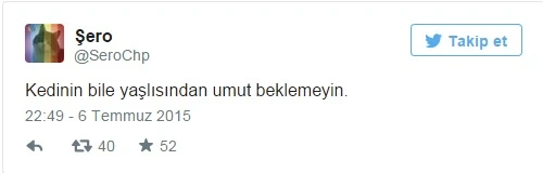 CHP Genel Merkezi'nin inşaatından bu yana parti binasında hayatını sürdüren Şero adlı kedinin adına açılan Twitter hesabından atılan Tweetler CHP'de ortalığı fena karıştıracağa benziyor. Baykal'ın, televizyon programında canlı yayında olduğu sırada atılan tweet'te, "Kedinin bile yaşlısından umut beklemeyin" denildi.