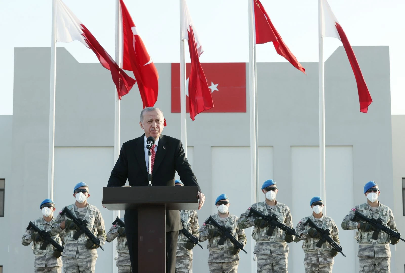Cumhurbaşkanı Recep Tayyip Erdoğan, Doha temaslarını kapsamında Katar-Türk Birleşik Müşterek Kuvvet Komutanlığını ziyaret etti. Buradaki konuşmasına, Doha’da bulunmaktan memnuniyet duyduğunu ifade ederek başlayan Erdoğan, “Ülkemizi ve milletimizi burada şerefle temsil eden siz kahraman askerlerimizi canı gönülden tebrik ediyorum. Bu vesileyle vatanımızın bağımsızlığı uğrunda gözlerini kırpmadan canlarını feda eden aziz şehitlerimizi rahmetle yad ediyor, gazilerimize şükranlarımı sunuyorum. Sınırlarımız içinde ve dışında devletimizin bekası, milletimizin güvenliği, dost ve kardeş ülkelerin huzuru için fedakarca görev yapan tüm emniyet güçlerimize Rabbimden muvaffakiyetler niyaz ediyorum” dedi.