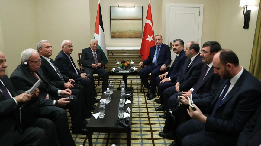 Cumhurbaşkanı Recep Tayyip Erdoğan, New York'ta Filistin Devlet Başkanı Mahmud Abbas ile bir araya geldi.