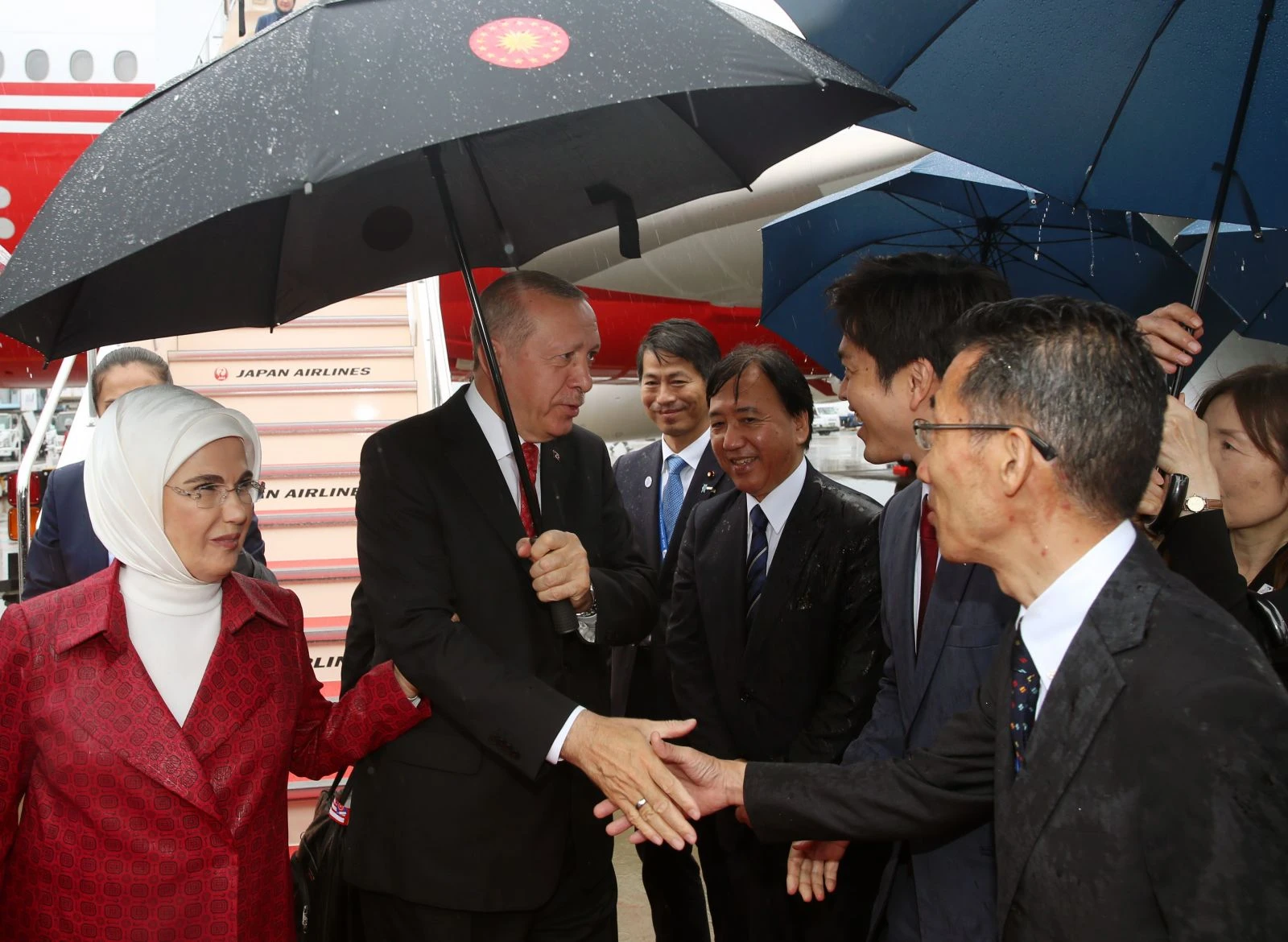 Japonya'nın Osaka şehrinde gerçekleştirilecek G20 Liderler Zirvesi'ne katılmak üzere dün Türkiye'den ayrılan Cumhurbaşkanı Recep Tayyip Erdoğan, bugün TSİ 06.15'te Osaka'nın Kansai Havaalanı'na indi. TC TRK uçağıyla Japonya'ya gelen ve Japonya Dışişleri Bakan Yardımcısı Kenji Yamada ve Türkiye'nin Tokyo Büyükelçişi Hasat Murat Mercan tarafından karşılanan Erdoğan'a eşi Emine Erdoğan'ın yanı sıra Dışişleri Bakanı Mevlüt Çavuşoğlu, Hazine ve Maliye Bakanı Berat Albayrak, Milli Savunma Bakanı Hulusi Akar, Cumhurbaşkanlığı İletişim Daire Başkanı Fahrettin Altun ve Cumhurbaşkanlığı Sözcüsü İbrahim Kalın da eşlik ediyor.