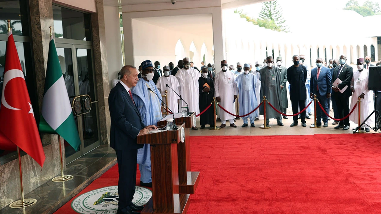 Cumhurbaşkanı Recep Tayyip Erdoğan, Afrika ziyaretinin üçüncü durağı Nijerya’da önemli anlaşmalara imza attı. Nijerya ile geçtiğimiz yıl ticaret hacminin 2 milyar doları bulduğunu belirten Cumhurbaşkanı Erdoğan “İş birliğimizi her alanda daha ileriye taşımakta kararlıyız” dedi.