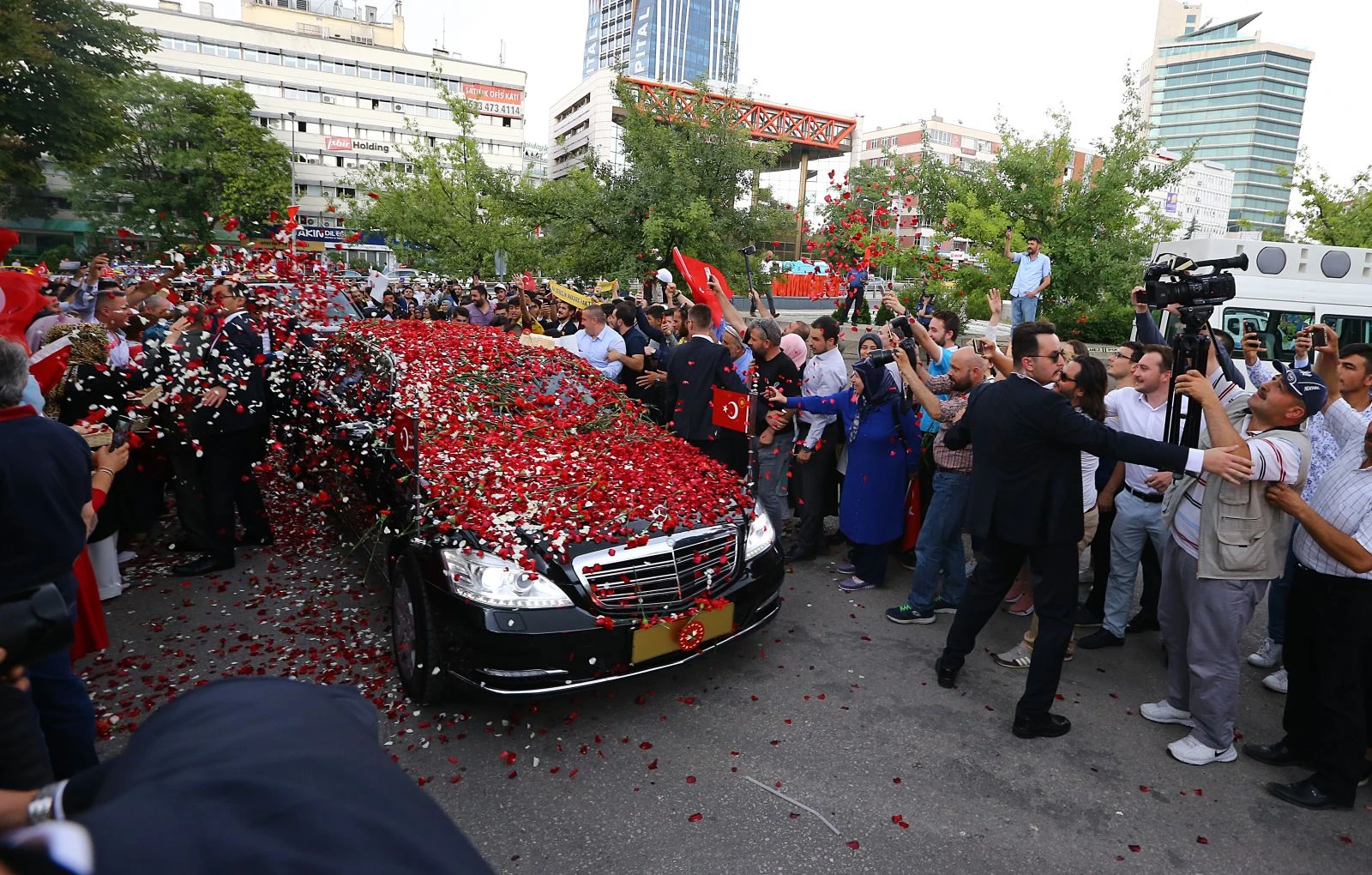 16:25 :Yoğun güvenlik önlemleri ile Meclis'e geçen Erdoğan'a güzergahta vatandaşlar büyük sevgi gösterilerinde bulundu. Erdoğan'ın makam aracının üzerine gül dökülmesi de dikkat çekti.
