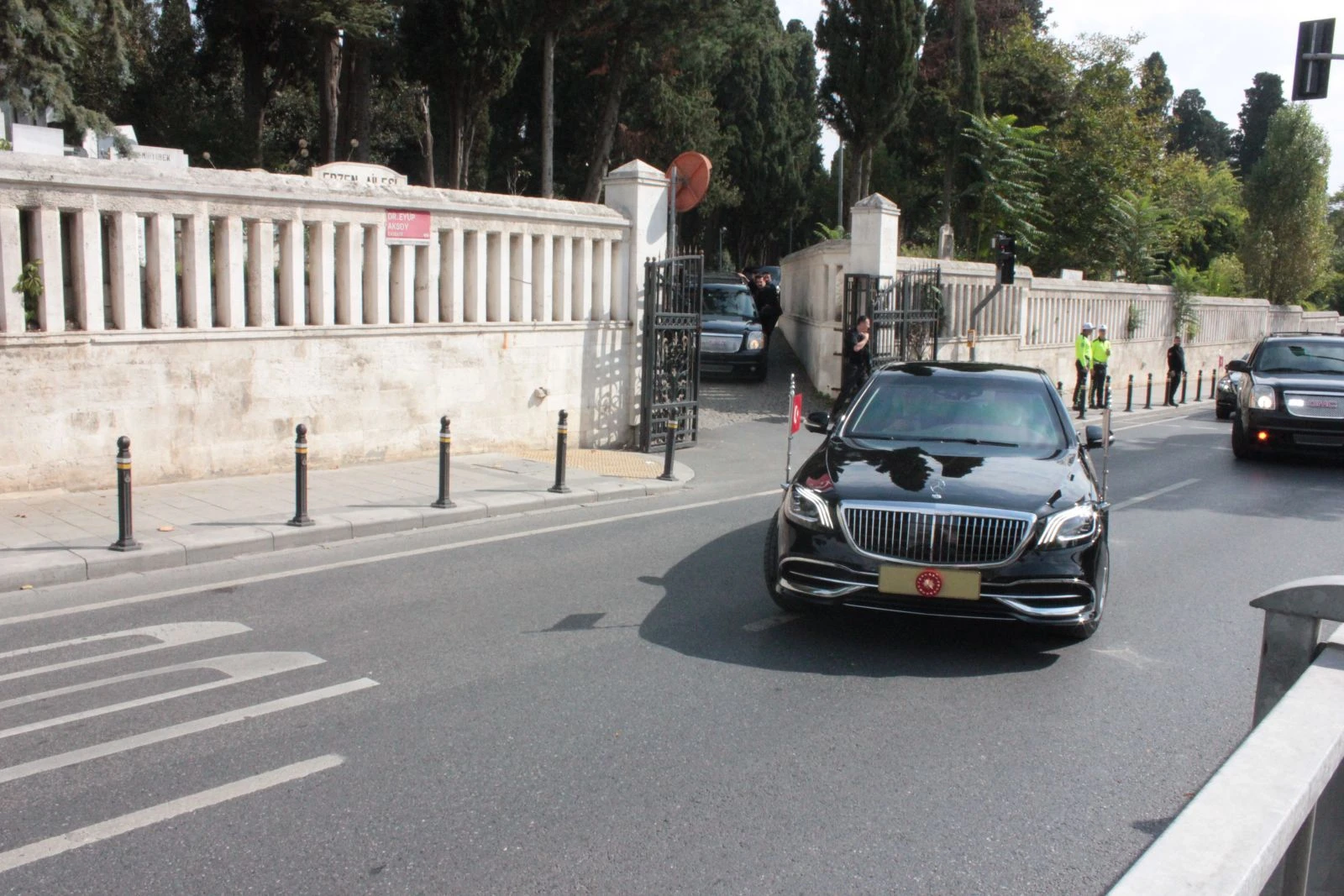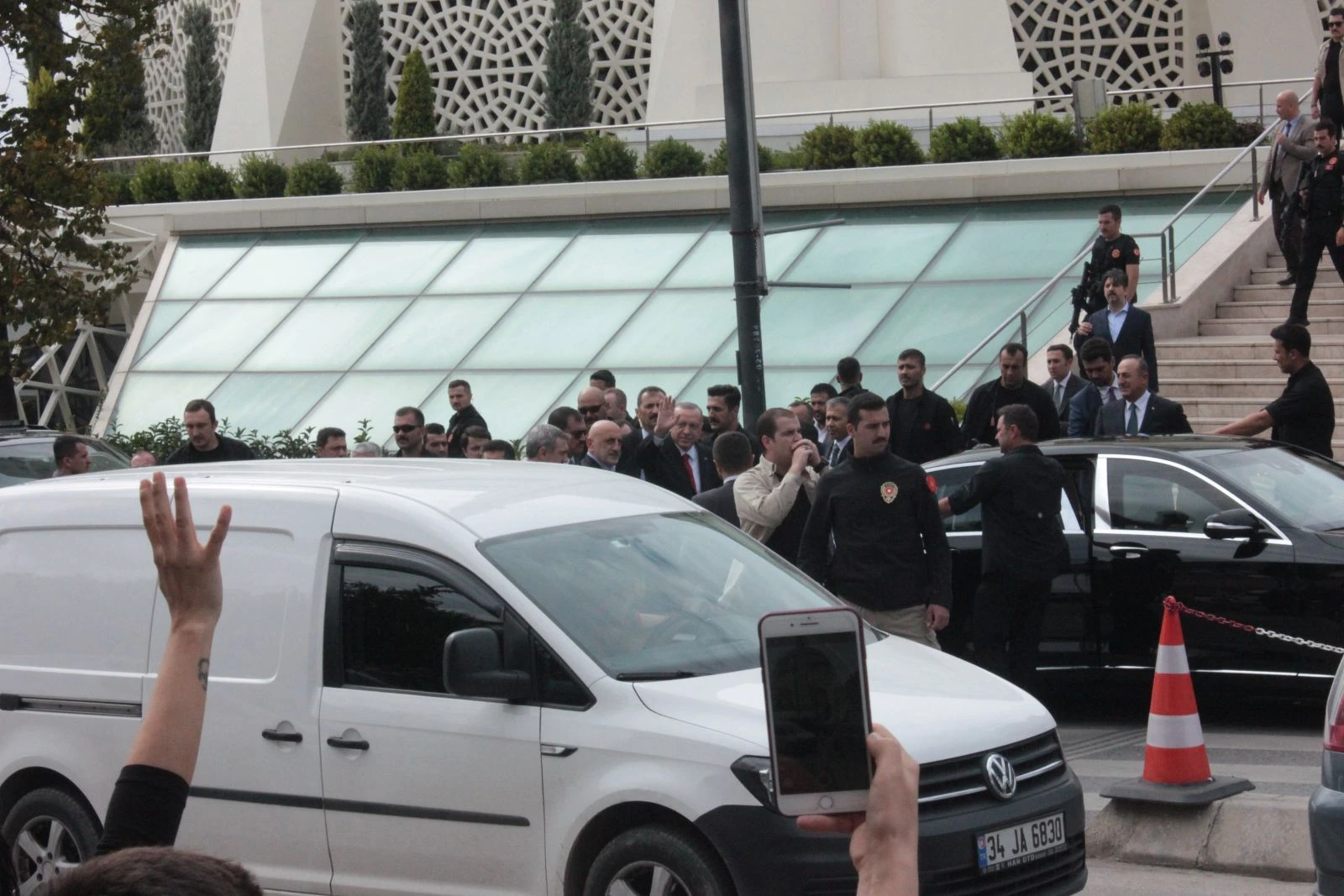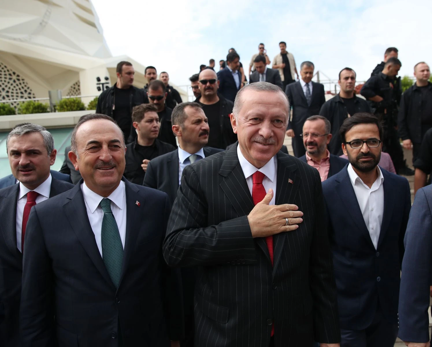 Namaz çıkışında vatandaşların yoğun ilgisine el sallayarak karşılık veren Cumhurbaşkanı Erdoğan'a Dışişleri Bakanı Mevlüt Çavuşoğlu da eşlik etti. Erdoğan, Bakanı Çavuşoğlu ile birlikte makam aracına binerek camiden ayrıldı.