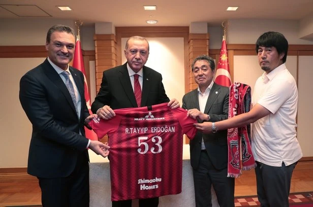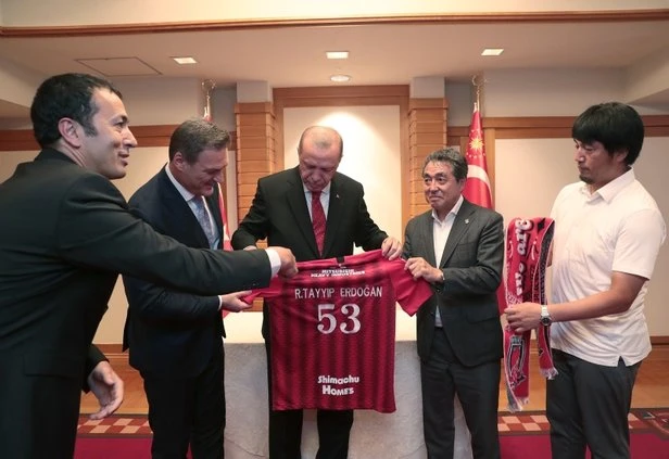Shuzo Nakamura, Cumhurbaşkanı Erdoğan'a kulübün 53 numaralı formasını hediye etti.