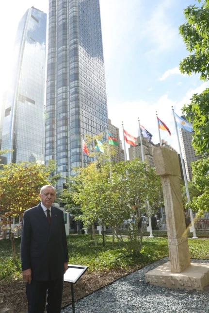 Paylaşımında dikilitaş replikası ziyaretinde çekilen fotoğrafa da yer veren Erdoğan'ın BM 76. Genel Kurulu'na hitabının ardından eseri ziyaret ettiği öğrenildi.