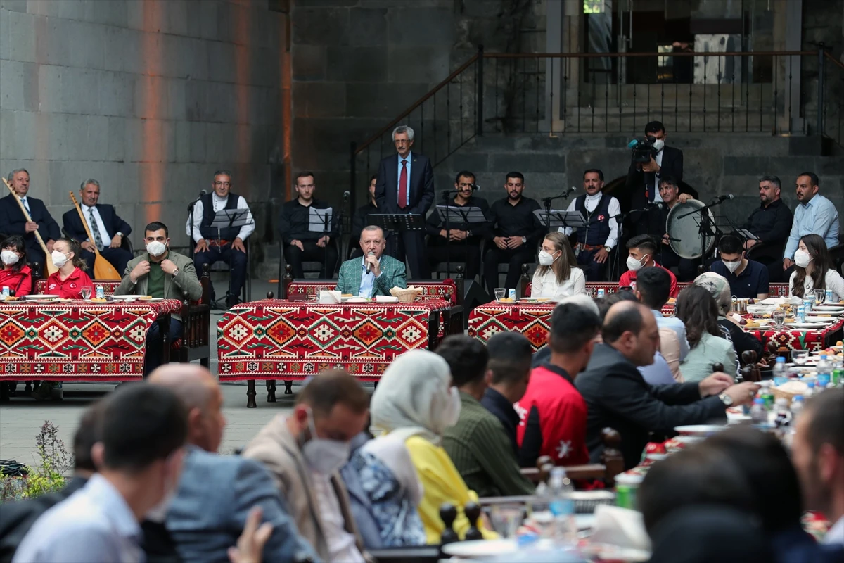 Medrese girişinde Erzurum bar ekibince sergilenen halk oyunuyla karşılanan Cumhurbaşkanı Erdoğan, gençlerle sohbet etti, bazı gençlerin ve sanatçıların seslendirdiği yöresel türküleri dinledi.