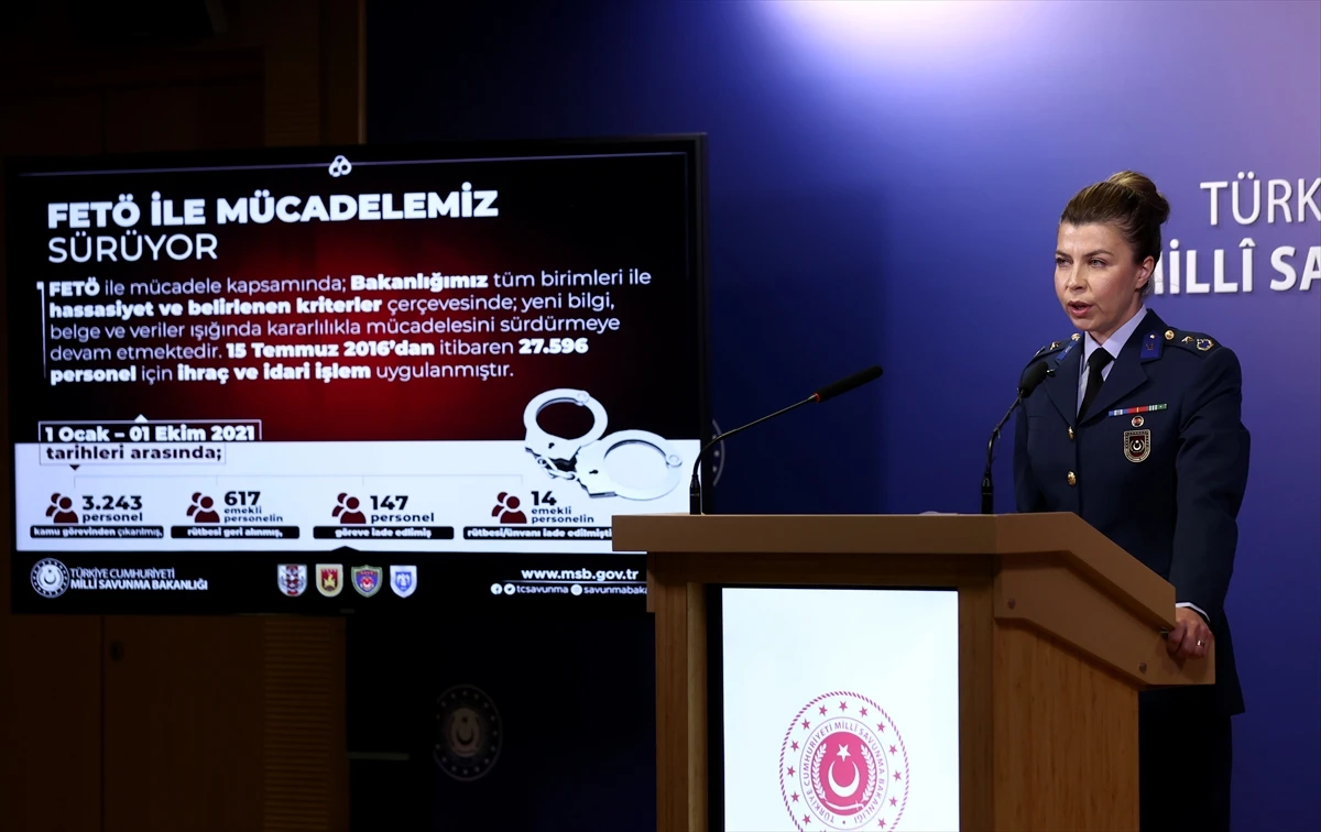 Bakanlığın yeni bilgi, belge ve veriler ışığında FETÖ ile mücadelesini kararlılıkla sürdürdüğünü belirten Kara, "15 Temmuz 2016'dan itibaren 27 bin 596 personel için ihraç ve idari işlem uygulanmıştır. 1 Ocak-1 Ekim 2021 tarihlerinde 3 bin 243 personel kamu görevinden çıkarılmış, 617 emekli personelin rütbesi geri alınmış, 147 personel göreve iade edilmiş, 14 emekli personelin rütbesi/unvanı iade edilmiştir." bilgisini paylaştı.