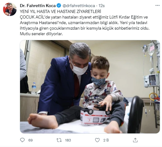 Bakan Koca, yeni yılda gerçekleştirdiği ziyaretleri sosyal medyadan şu şekilde paylaştı: