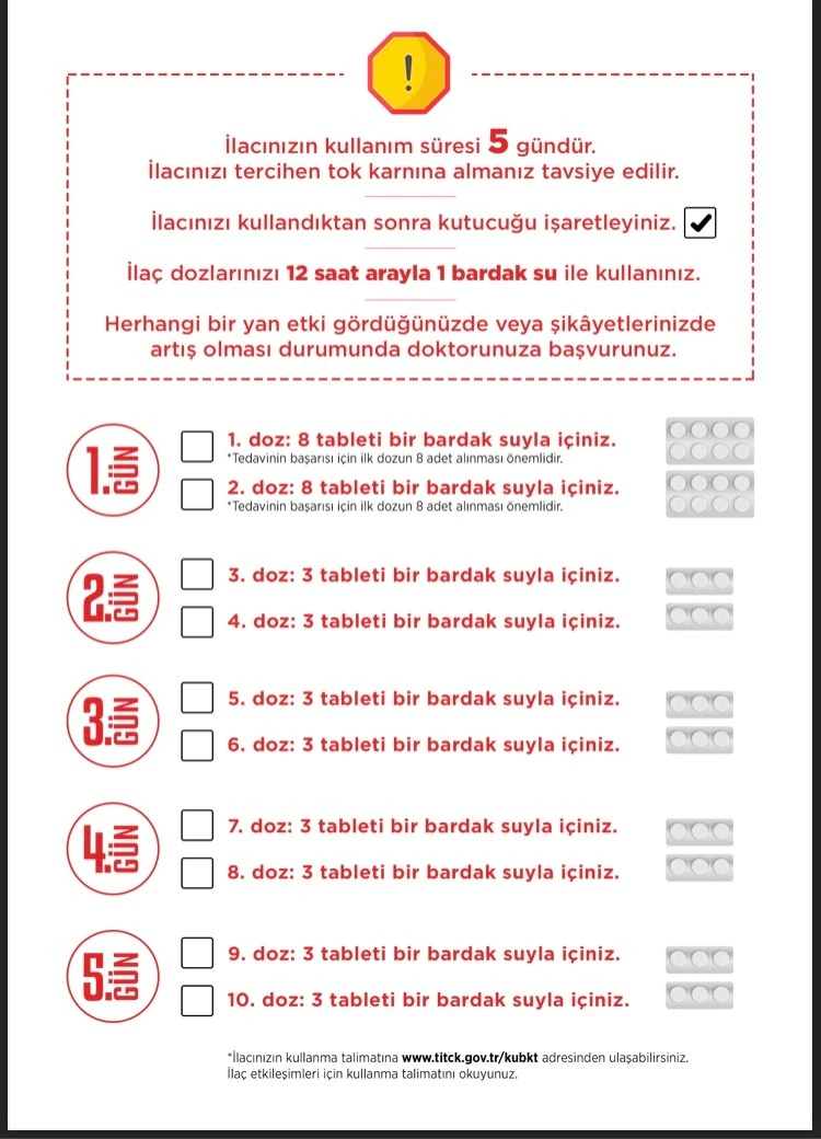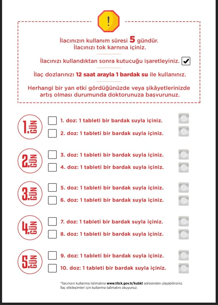 Vatandaşlar aldıkları dozu, bu broşürler üzerinden işaretleyerek takip edebiliyor. Broşürde herhangi bir yan etki görüldüğünde veya şikayetler artarsa kişinin hekime başvurması gerektiği de vurgulanıyor.