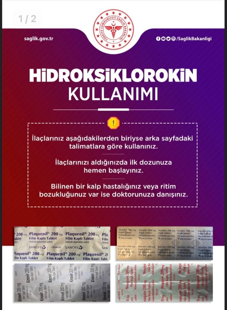 Koronavirüs Bilim Kurulunun tanı ve tedavi rehberinde yer alan ilaçların kullanımında en çok karşılaşılan sorun olan “ilaç dozunun karıştırılması” konusuna broşürlerde açıklık getirildi. Rehbere göre hem “Ayaktan izlenecek komplike olmayan veya hafif-orta pnömonisi olan olası/kesin Covid-19 olgularında” hem de “Yatış endikasyonu olan Covid-19 olgularında” Hidroksiklorokin ve/veya Favipiravir kullanımı öneriliyor.