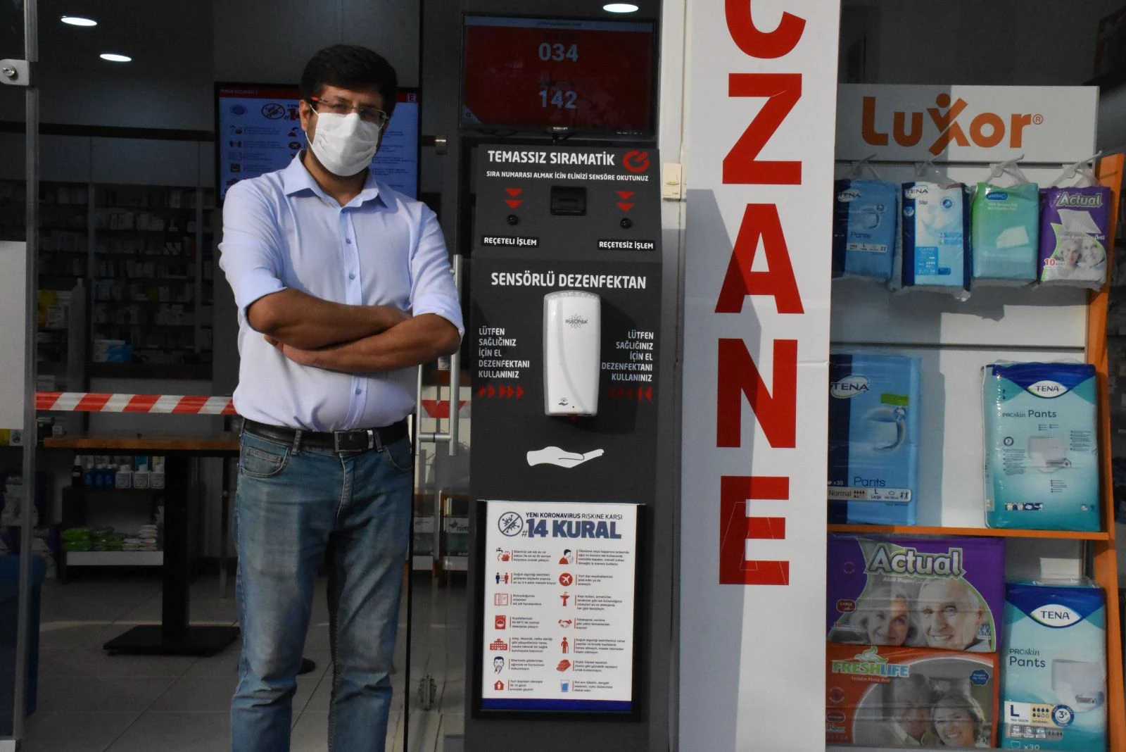 Kovid-19 süreciyle birlikte eczanelerden gelen talep üzerine cihaz üzerinde değişiklikler yapan Gündüz, cihaza, reçeteli ve reçetesiz işlem için sensörlü temassız buton ile sensörlü dezenfekten yerleştirdi.