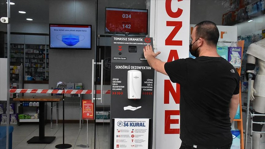 Vatandaşlar sırasının ekrana yansımasıyla birlikte içeri girerek alışverişini yapıp, içeride yoğunluk oluşturmadan eczaneden ayrılıyor.
