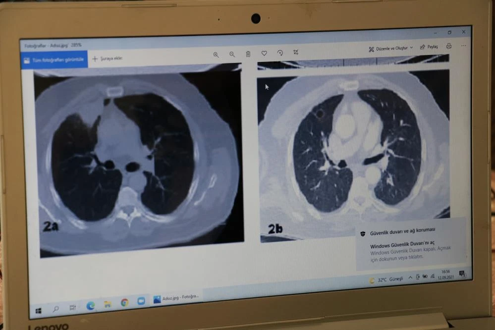 Dr. Fatoş Kozanlı, tedavi sonrası tomografisi çekilen N.T.'nin akciğerindeki tümörün yok olduğunu belirlerken, “Hastanın sağ akciğerinde 4 santimetreye ulaşan bir lezyon tespit edildi. Sonra akciğer tomografisi çekiliyor ve yine sağ akciğer 4 santimetre büyüklüğünde radyolojik özelliği olarak akciğer kanserine benzeyen lezyonlar görülüyor” dedi.