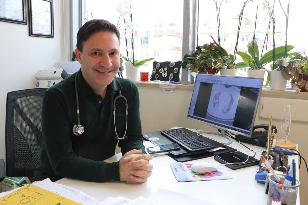 Yurt dışından kendisine gelen ve bebeği ile annesini hayata tutunmasını sağlayan Özkaya, "Bu yurt dışında hamileyken kovide yakalan ve ciddi akciğer tutulumu olan 38 yaşında hastamız var. Tedavi olmak için bizim ülkemize geldi. Ciddi solunum yetmezliği vardı. Biz hem annenin hem de bebeğin hayatını garanti altına almak için bebeği aldık. Sağlıkla doğum yaptı. Annenin akciğerine tomografi çektik. Ciddi akciğer tutulumu, ciddi harabiyet olduğunu tomografisinde gördük. Geçen yıllarda gebelerde böyle tutulumlar yoktu" ifadelerini kullandı.