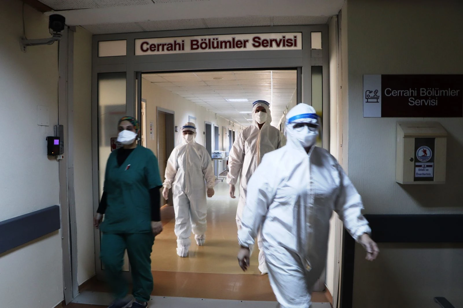 Covid-19 servisinde üzerinde koruyucu kıyafetler, eldiven, maske, siperlik gibi malzemeler giyerek her gelen hastanın iyileşmesi için elinden geleni yapan sağlık çalışanlarının mücadelesi İHA objektiflerine yansıdı.