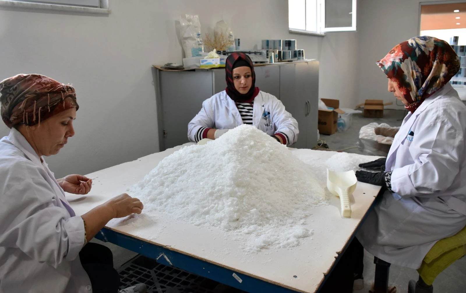 Dağlık bölgeden çıkan kaynak suyunun sera tipi havuzlarda güneş ışınlarıyla buharlaştırılması sonucu kimyasal işleme maruz kalmadan elde edilen tuz, özellikle magnezyum oranının yüksekliğiyle rağbet görüyor.