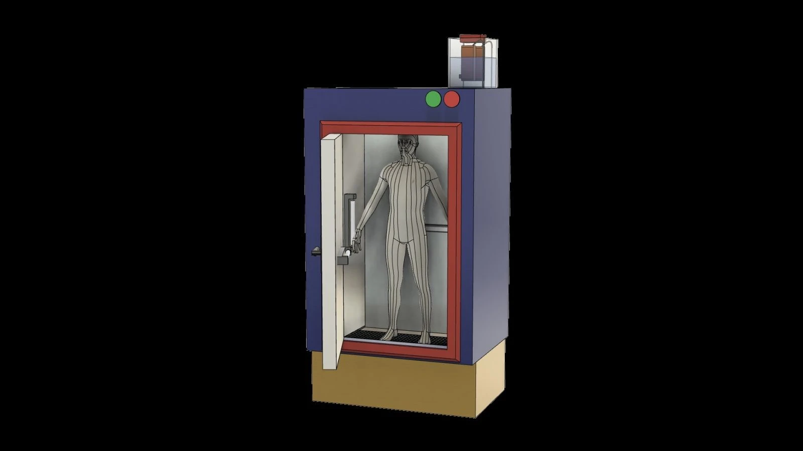 Dezenfeksiyon kabini; Bu prototip ise sadece hasta yatakları, solunum cihazları, kıyafetler, gözlükler, siperlikler gibi virüs bulaşmış büyük nesnelerin dezenfekte edilmesi için tasarlandı.