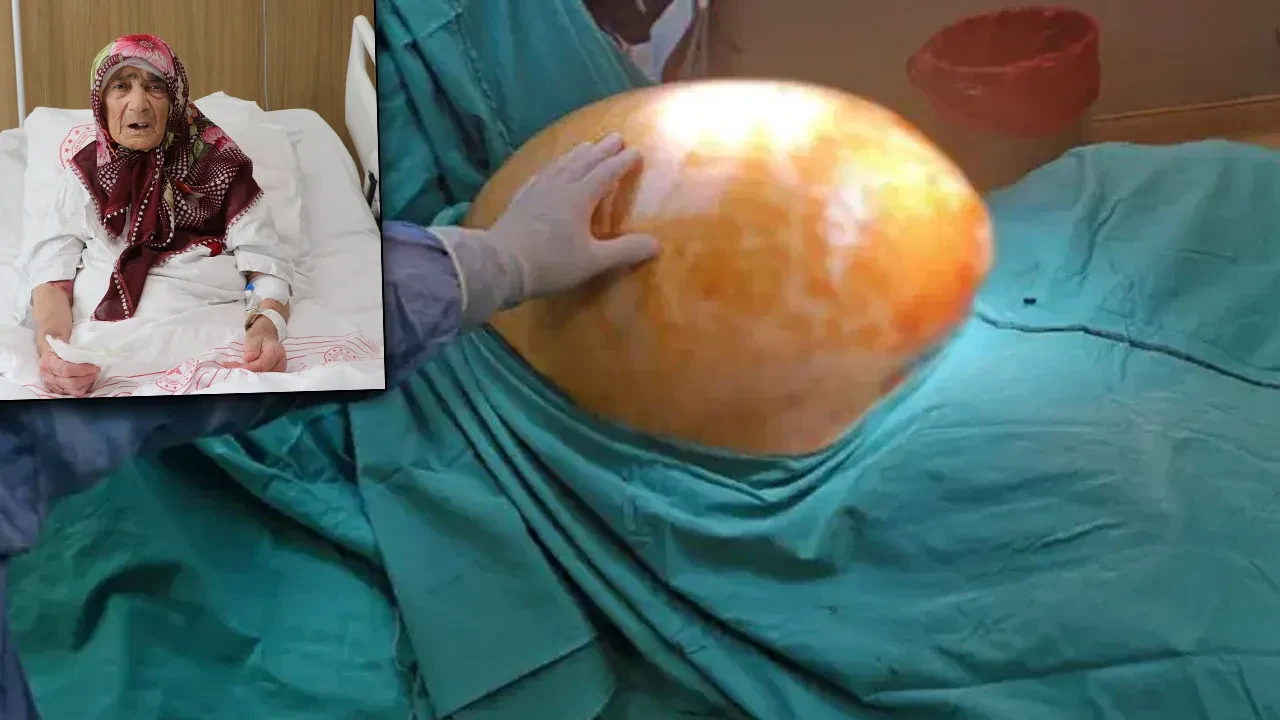 Doktorlar yaptıkları incelemede yaşlı kadının karnında karnında 4,5 kilogram ağırlığında ve yaklaşık 30 santimetre çapında bir tümör belirlendi.