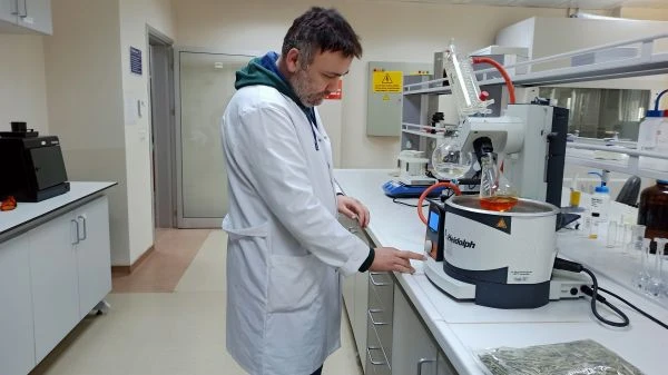 “Kurutulmuş zeytin yaprakları çay demler gibi sıcak suyun içine atılarak demleniyor. Daha sonrasında zeytin yaprağında bulunan oleuropein aktif maddesini bu suya serbest bırakıyor. Aktif maddeden daha fazla edinebilmek için bu suyu uçurmak, yani bu zeytin yaprağının ekstratını elde etmek gerekiyor. Normalde kaynatılarakta uçurulabilir o su. Ancak birçok organik bileşen yüksek sıcaklıkta çözündüğü için kaynatılarak uçurulduğunda o aktif bileşeni de bir miktarda olsa kaybediyoruz. Bizler burada buharlaştırıcı ile bu ekstratın elde edilmesini sağlıyoruz. Yani bu zeytin yaprağını kaynattıktan sonra elde ettiğimiz su artı aktif madde bileşeninin suyunu burada uzaklaştırıyoruz. Normalde kaynatma işlemine gerek kalmaksızın bileşenin içindeki su buharla çekilerek kaynama derecesi düşürülüyor ve su çok daha düşün sıcaklıklarda kaynıyor. Daha sonra yine vakum etkisiyle su çekilerek yoğuşturuyoruz ve aktif ekstratı elde ediyoruz. Burada birkaç farklı deneme yaptık. Örneğin 50 santigrat derece suyun içine zeytin yaprağını attık. Sonra oda sıcaklığında demleme işlemi yaptık ve suyunu büyük oranda uzaklaştırdık. Elde ettiğimiz ekstratlar ile bağışıklık sistemini güçlendirmek için ister direk o elde ettiğimiz aktif maddeyi isterseniz de suyun içine koyarak uygulanabilir. Düzenli kullanımda da bağışıklık sistemini güçlendirdiği klinik deneylerle ortaya konmuştur” diye konuştu.