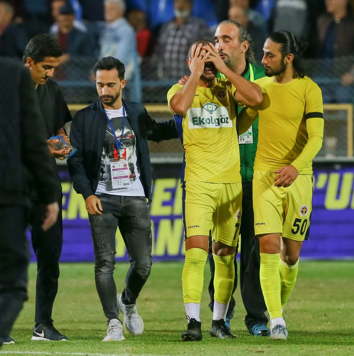 Ekol Göz Menemenspor'da 1-0 kazandığı karşılaşmada golün asistini yapan ve dün annesini kaybeden Mustafa Çeçenoğlu karşılaşma sonrası gözyaşlarını tutamadı. Çeçenoğlu’nu takım arkadaşları teselli etti.