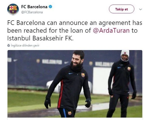 FC Barcelona ve İstanbul Medipol Başakşehir kulüpleri Arda Turan'ın iki buçuk sezon kiralık olarak transferi konusunda anlaşmaya vardı. Bu süreçte FC Barcelona oyuncunun UEFA transfer dönemleri içerisinde başka bir takıma transferi hakkını saklı tutmakla birlikte performansa göre bonuslar alacak. İstanbul Medipol Başakşehir'in satın alma opsiyonu bulunuyor.