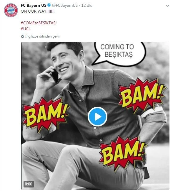 Daha sonra temsilcimiz Beşiktaş'ın paylaşımını alıntılayan Bayern ekibinin sosyal medya adresi şu paylaşımda bulundu: