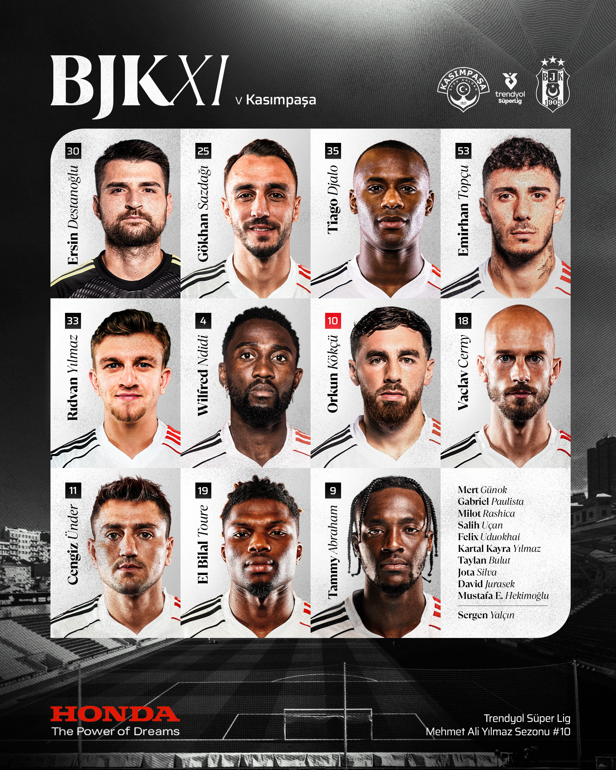 Beşiktaş: Ersin, Gökhan, Djalo, Emirhan, Rıdvan, Ndidi, Cerny, Orkun, Cengiz, El Bilal, Abraham.