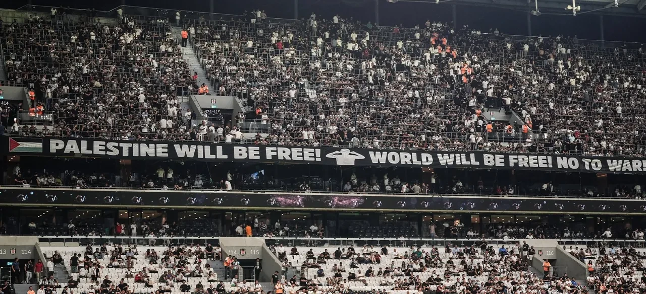 72' Tribünlerde Filistin'e destek tezahüratları yapılıyor.