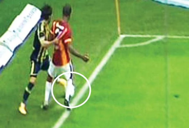 Bu pozisyona benzer bir an da ligin ilk yarısında oynanan Galatasaray-Fenerbahçe maçında gerçekleşmişti. Karşılaşma, Sneijder'in iki golüyle 2-0 Galatasaray lehine devam ederken gelişen Fenerbahçe atağında Hasan Ali Kaldırım meşin yuvarlağı taç çizgisinin dışından çevirmiş ve hemen sonrasında ise duraksayan onun ortasında skor 2-1'e gelmişti. Derbiden sonra futbol yorumcularının ortak görüşü topun dışarıdan çevrildiği yönündeydi.