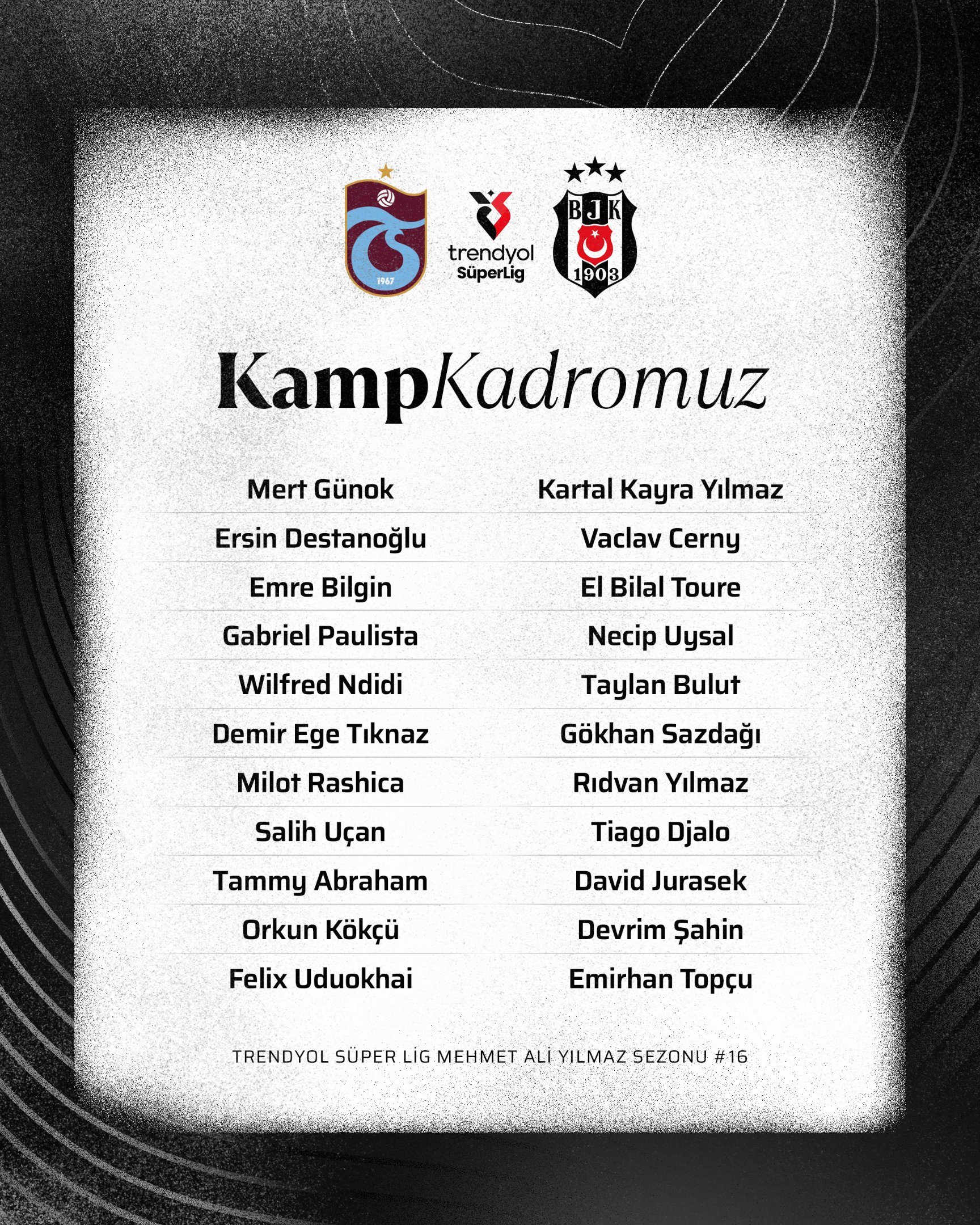 Beşiktaş'ın dev maçtaki kadrosu netleşti. Rafa Silva'nın yanı sıra Svensson, Cengiz Ünder, Jota Silva ve Mustafa Hekimoğlu da kritik karşılaşmanın kadrosunda yer almadı.