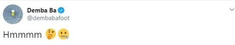 Demba Ba, Twitter'dan yaptığı paylaşımda, "Hmmmm" ifadelerini kullanarak emojiler bıraktı.