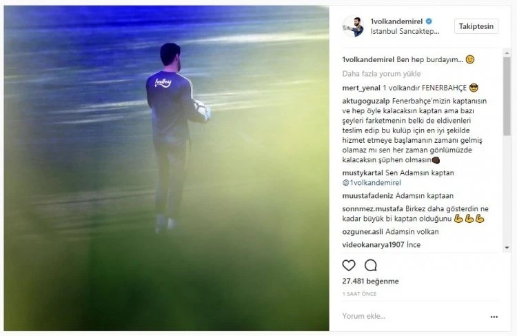 Öte yandan Volkan Demirel, bu haberlerin ardından "Ben hep buradayım" sözleriyle bir paylaşımda bulundu ve Fenerbahçe Tesisleri'ni etiketledi.