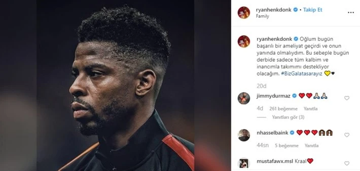 Ryan Donk, söz konusu paylaşımında," Oğlum bugün başarılı bir ameliyat geçirdi ve onun yanında olmalıydım. Bu sebeple bugün derbide sadece tüm kalbim ve inancımla takımımı destekliyor olacağım." ifadelerini kullandı.